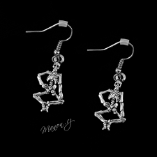 Strašidelné náušnice starostříbrné barvy ve tvaru koster.