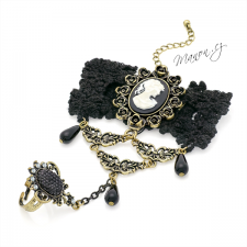 Retro náramek s černou krajkou, kamejí a prstenem.