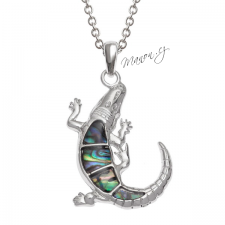 Řetízek s přívěskem krokodýla a novozélandskou perletí Paua. Krabička zdarma.