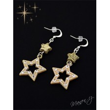 Visací náušničky se dvěma různými hvězdičkami zlatavé barvy.