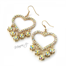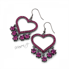 Luxusní náušnice ve tvaru srdce s visacími kamínky.