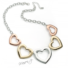 Náramek s přívěsky ve tvaru křížů a srdcí.