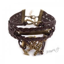 Textilní náramek s kotvou, nápisy a symbolem nekonečna.
