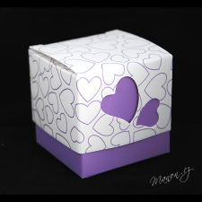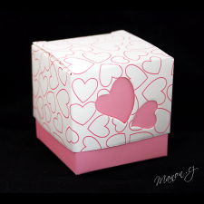 Dvoudílná krabička se srdíčkovým potiskem a perforovanými srdíčky.