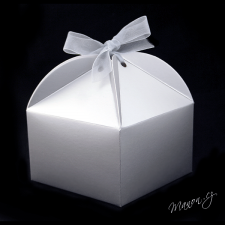Elegantní skládací krabička stříbrné barvy s mašličkou.