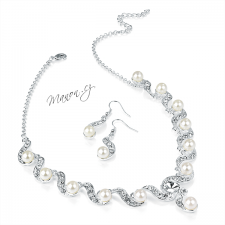 Luxusní sada náhrdelníku a náušnic s umělými perličkami a třpytivým kamínkem.