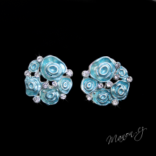 Netradiční elegantní náušnice ve tvaru růžiček s třpytivými kamínky.