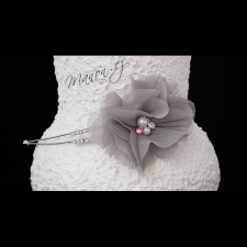 Kovová čelenka s dvojí řadou kamínků a textilním květem.