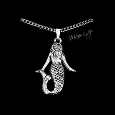 Cínový přívěsek mořská panna na řetízku z chirurgické oceli. Ruční výroba z Anglie. Krabička zdarma.