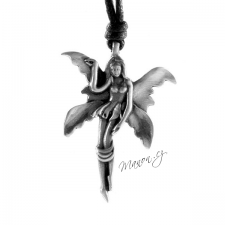 Cínový přívěsek víla na řetízku z chirurgické oceli. Ruční výroba z Anglie. Krabička zdarma.