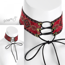 Náhrdelník obojkový (choker) s ornamentovým vzorem a šňůrkou.