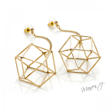 Náušnice s geometrickým 3D objektem na řetízku.