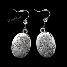 Oválné náušnice s rytou květinou a květinovými háčky.