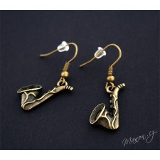 Originální náušnice ve tvaru saxofonů starobronzové barvy.