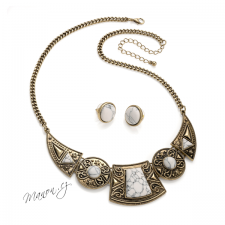 Retro náhrdelník a náušnice s umělým mramorem a ornamenty.