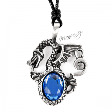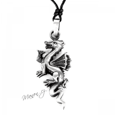 Cínový přívěsek ve tvaru draka na textilním řemínku.