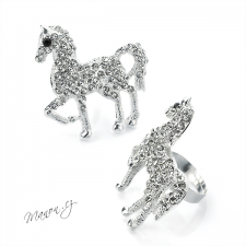 Prsten s velkým koněm a spoustou třpytivých kamínků. Nastavitelná velikost.