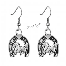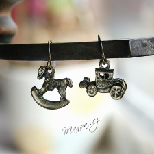 Retro náušnice starobronzové barvy - jedna ve tvaru kočáru, druhá představuje houpacího koníčka.