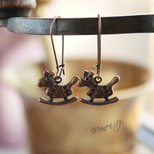 Originální visací náušnice v barvě mědi s houpacími koníky.