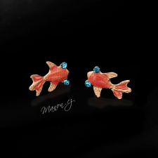 Náušnice ve tvaru barevných rybek s výraznými modrými očky.