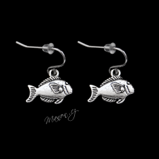 Drobné náušničky s rybami starostříbrné barvy.