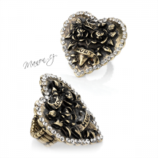 Luxusní velký prsten ve tvaru srdce s kamínky a nápisem.