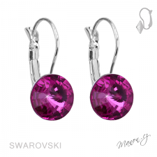 Swarovski náušnice typu klapky. Rhodiované s tmavě růžovým kamenem Swarovski.