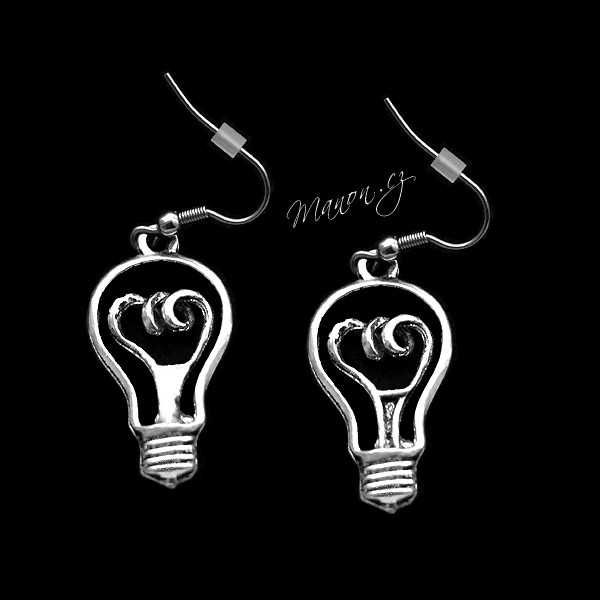 Náušnice mají tvar klasické žárovky. Háčky náušnic jsou vyrobeny z chirurgické oceli 316L od českého dodavatele. Chirurgická ocel nečerná, nežloutne, nerezaví, neztrácí lesk a je ideální volbou pro alergiky, protože neobsahuje nikl ani další alergeny. Přívěsky ve tvaru žárovek jsou vyrobeny z obecného bižuterního kovu, který je hypoalergenní. Součástí náušnic jsou gumové zarážky proti vypadnutí z ucha.